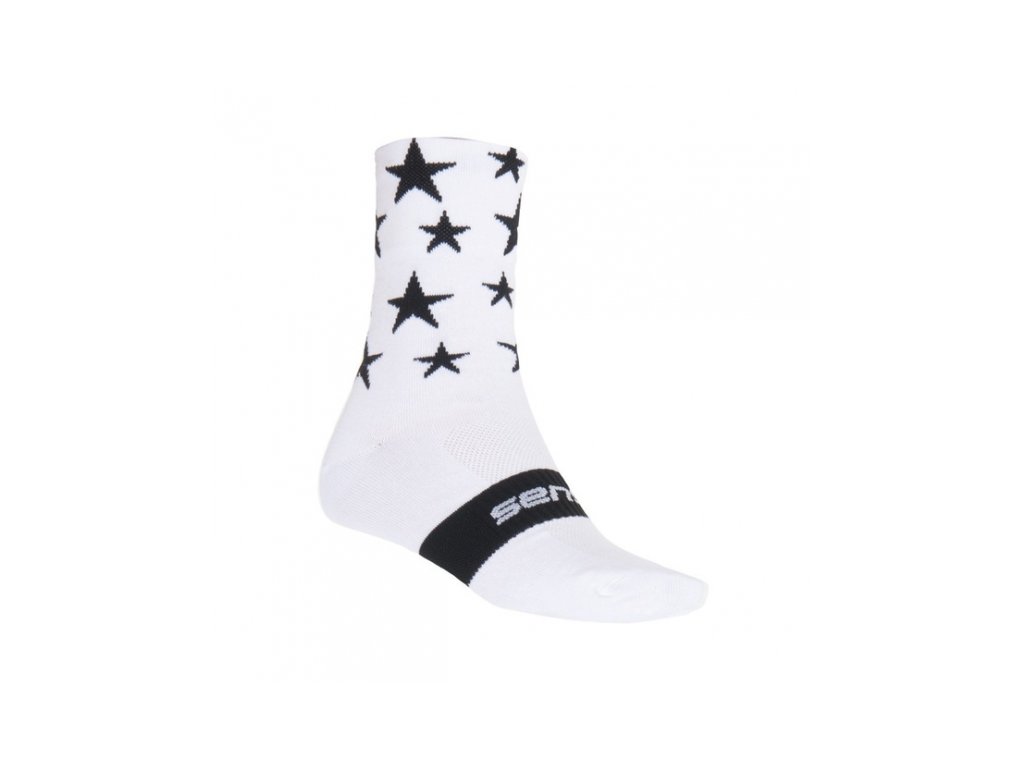 Cyklistické ponožky Race Evolution s designem Stars jsou lehké letní ponožky. Na spodní části chodidla mají tyto ponožky dvouvrstvý náplet. Nárt je síťovaný pro snadnější ventilaci vlhkosti. Pata a špička je speciálním tkaním zesílena na vyšší odolnost proti opotřebení. Tyto ponožky ocení především cyklisté a běžci.