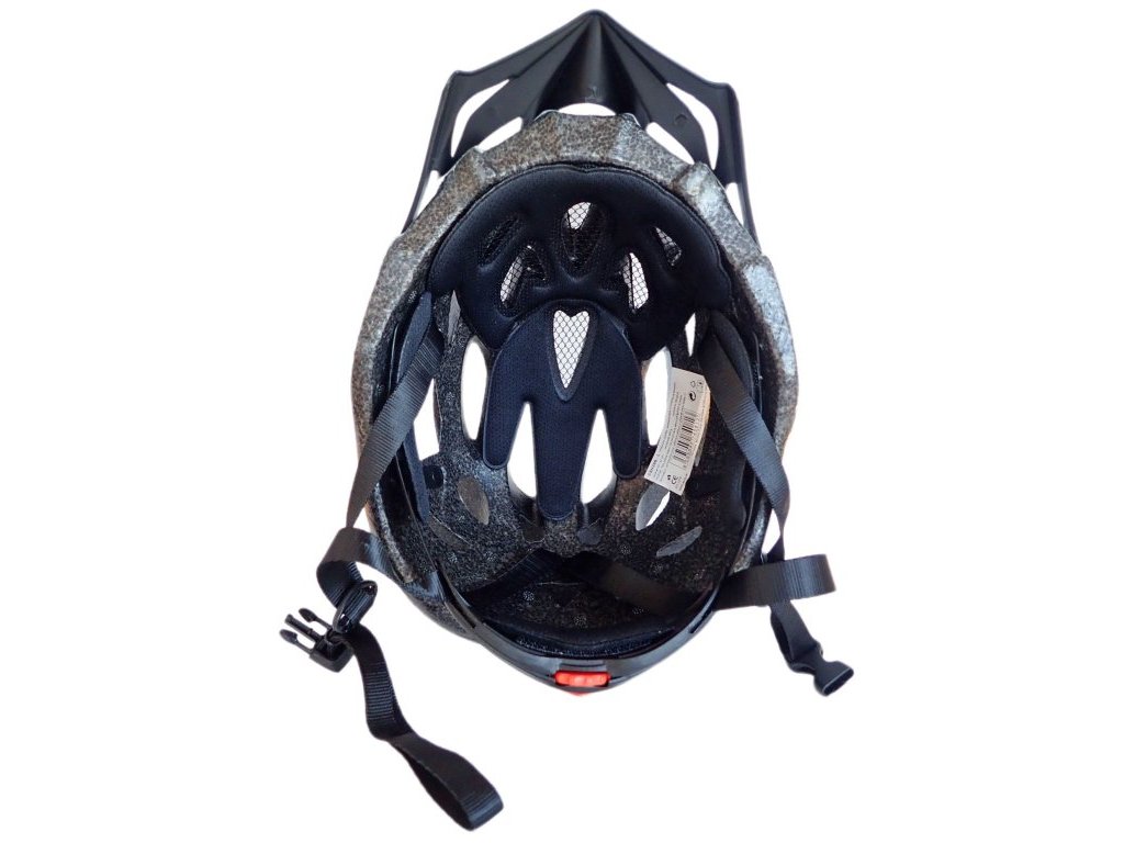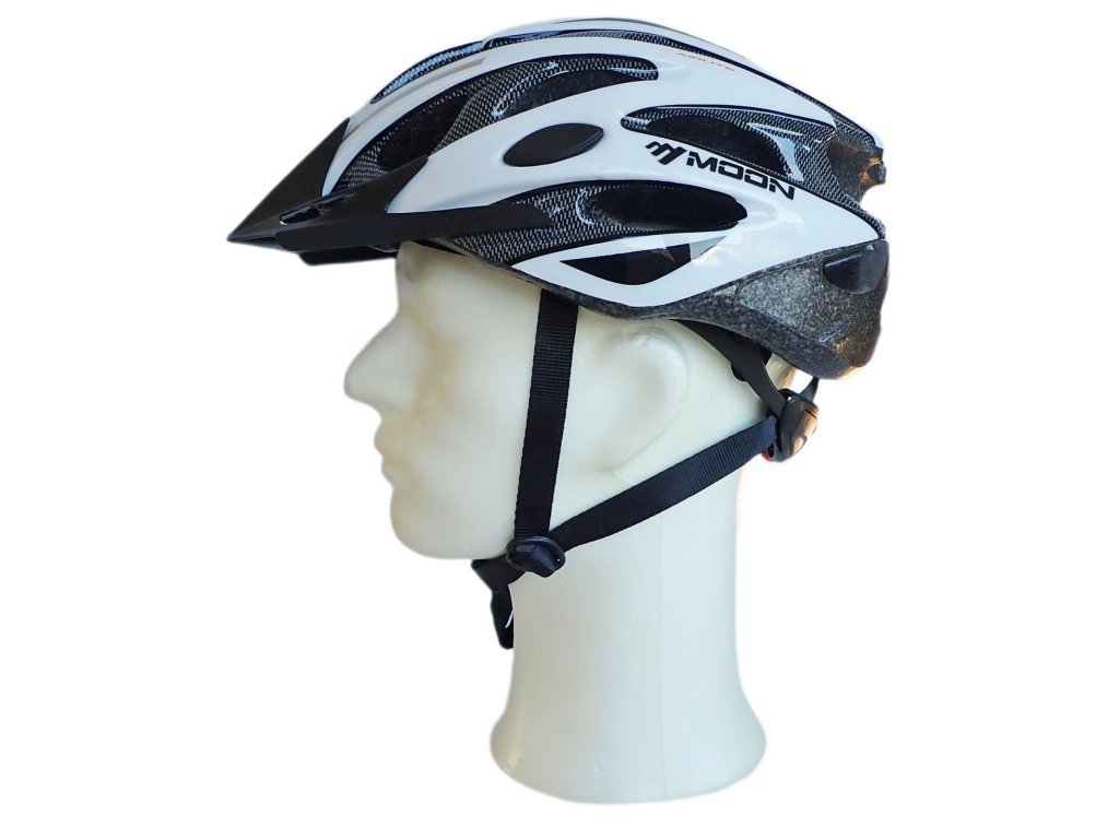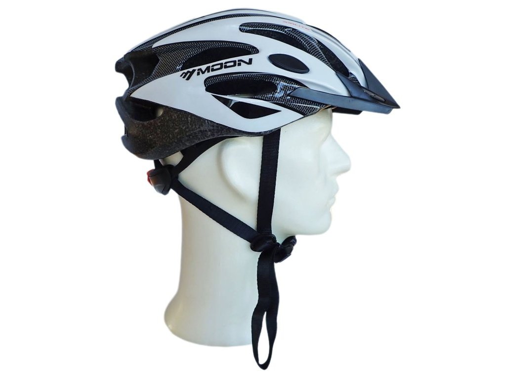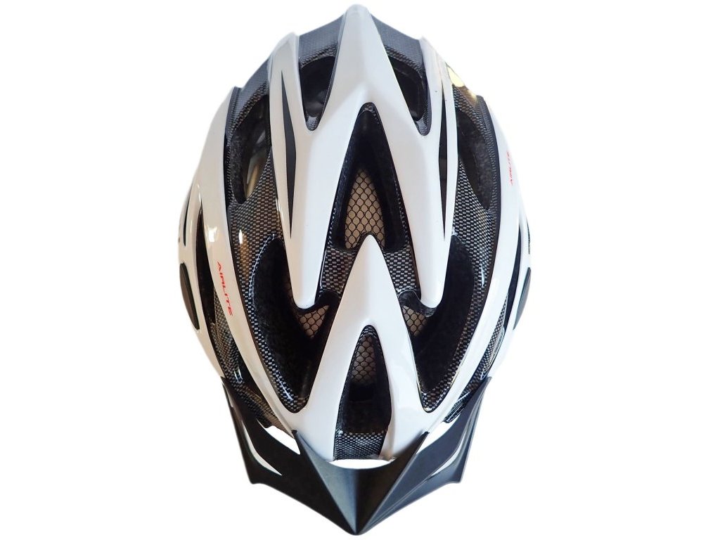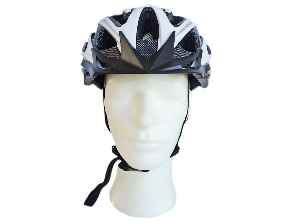 Cyklistická helma - odlehčená - BÍLÁ, 25 větracích otvorů, stahovací pásek se šroubem okolo hlavy pro dokonalé upnutí, demontovatelný clonící štítek, síťka proti hmyzu. Chladivá měkká výplň uvnitř helmy zvyšující komfort pro jízdu v teplém počasí.