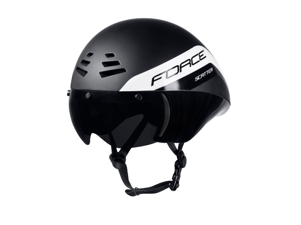 Časovkářská přilba SCATTER je navržena tak, aby byla co nejrychlejší, ale zároveň klade důraz na odvětrávní. Díky čelnímu odvětrávání a magnetickému sklu se snadno a rychle přizpůsobí měnícím se podmínkám a různým potřebám jezdce.časovkářská přilba, model navržen značkou FORCE