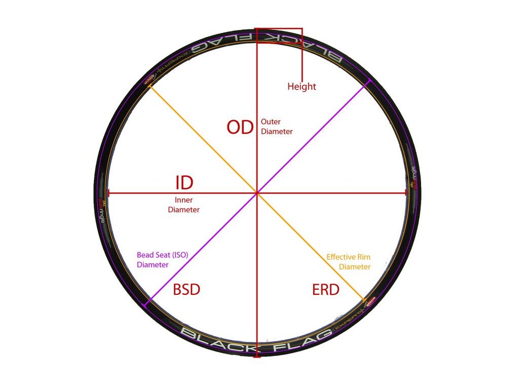 Výpočet pro rozměr 622:(hodnota ETRTO 622,3 mm (viz. na uvedeném obrázku označeno BSD). + 2x výška háku + 2x tloušťka stěny hřbetu – 2x výška ráfku (viz. na uvedeném obrázku označeno HEIGHT).