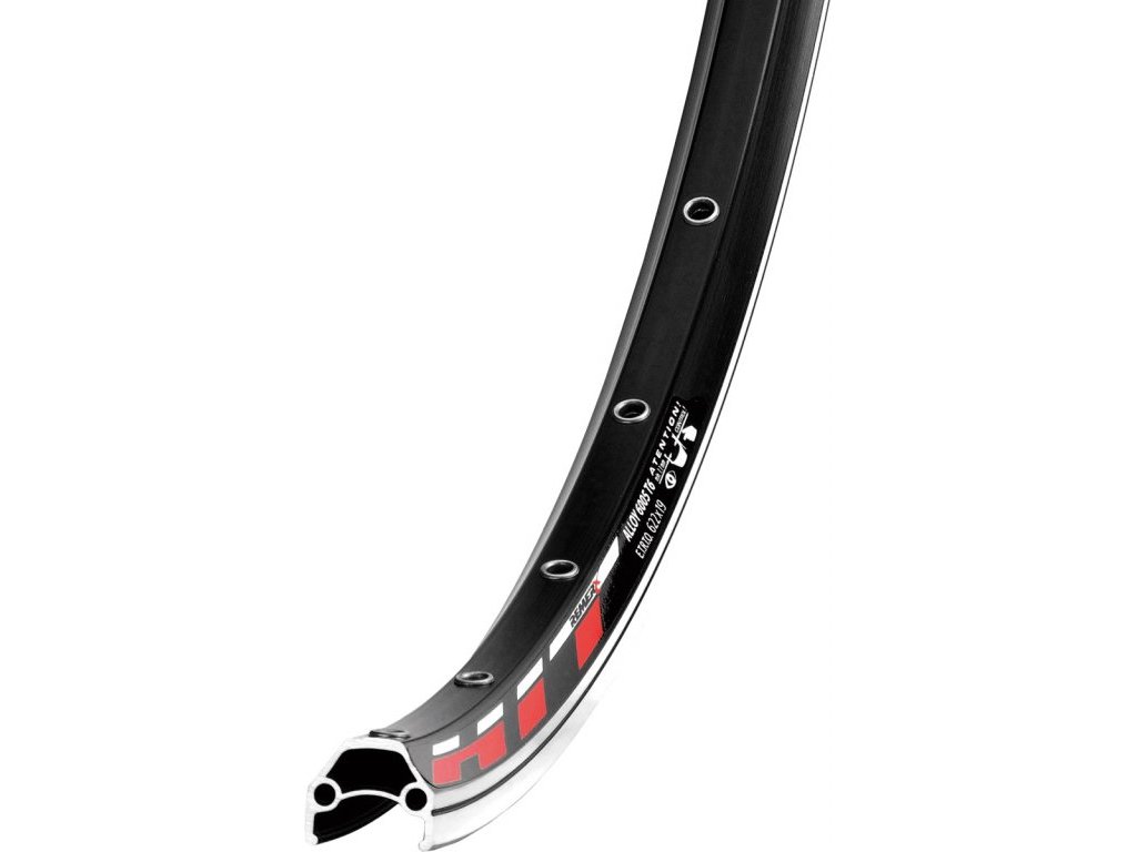 Dvoustěnný ráfek inovované konstrukce se hřbetem zesíleným nýtováním. Ráfek má nyní delší životnost, díky níž je vhodným společníkem pro cykloturistiku a městskou cyklistiku.
