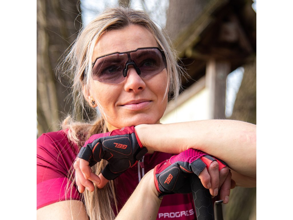 rukavice cyklistické Progress SOLARIA MITTS vínovo/růžové