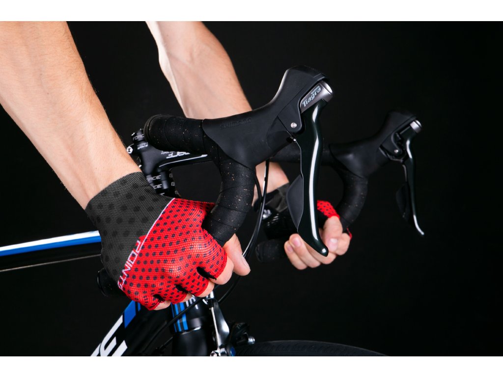 letní cyklistické rukavice, delší horní lem zápěstídlaň z pevné síťoviny s výstelkami a silikonem s protiskluzovou úpravou