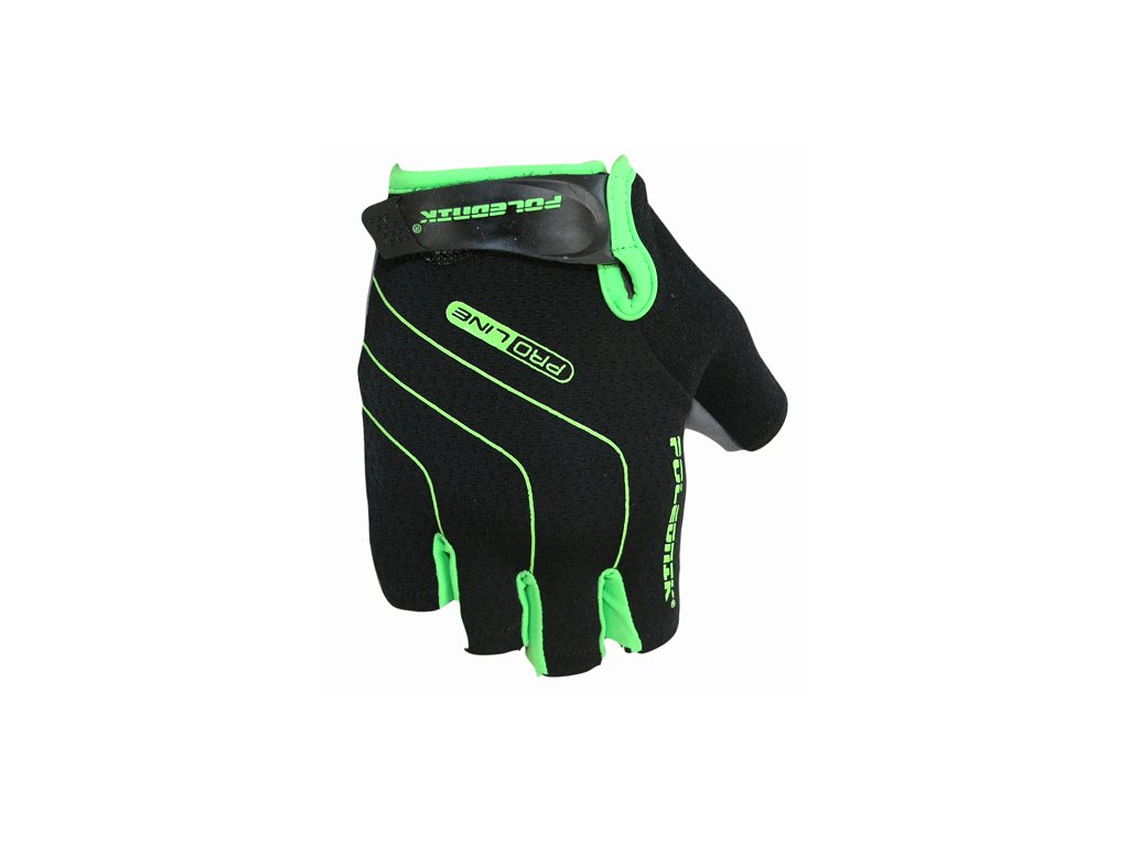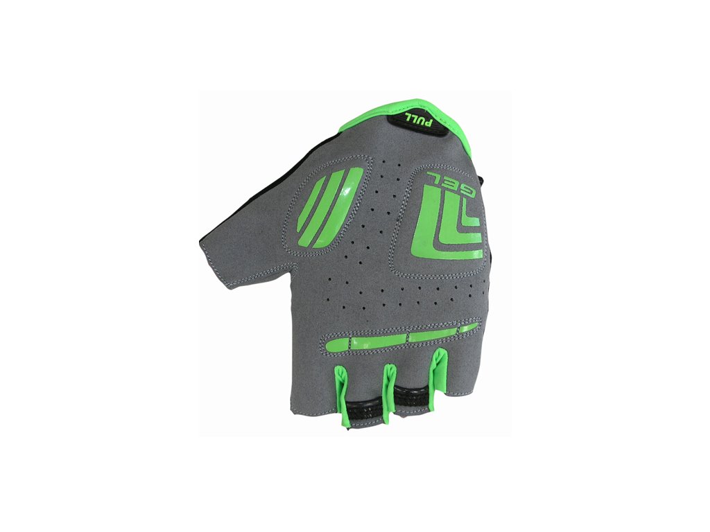 Dlaň: částečně perforovaná syntetická kůže, gelové vycpávky, protiskluzový silikonový potisk, poutka pro snadné stahování