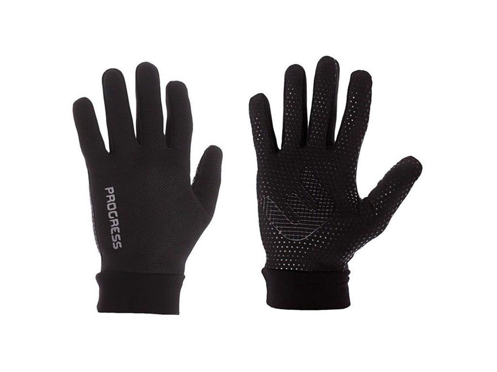 Tenké rukavice s větru odolnou membránou. Dlouhý náplet, silikonový adhezní potisk na dlaních a prstech.
