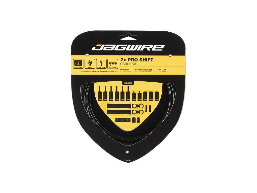 Sady Jagwire 2x Pro Shift poskytují vyšší výkon a styl. Lanka Pro Polished Slick Stainless a vložky pouzdra Slick-Lube poskytují upgrade oproti systémům OEM, zvýšenou přesnost řazení a dlouhotrvající výkon.