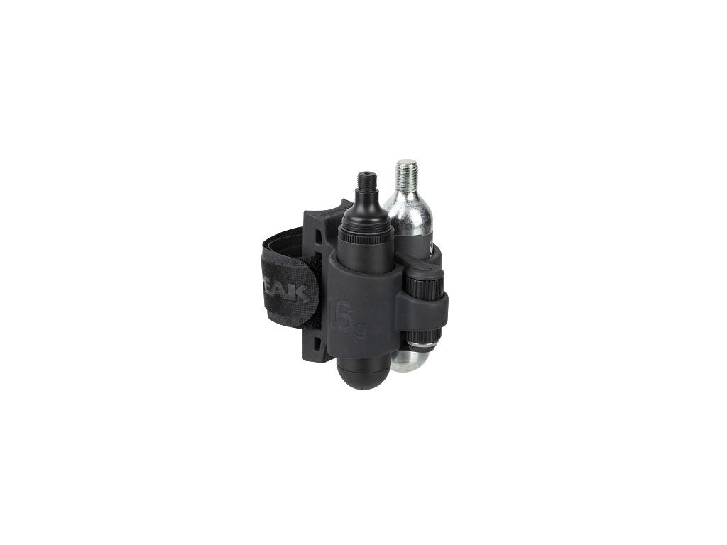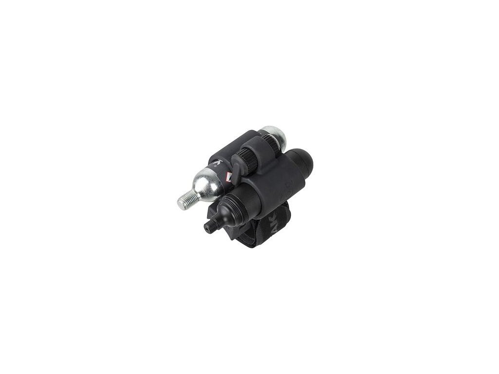 Nástroje: Nano AirBooster CO2 inflator, TubiCartridge R16, and one 16g CO2 cartridge