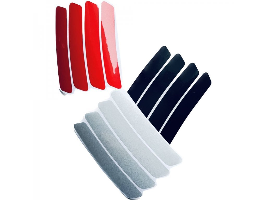 Reflexní samolepky se využívají jako doplněk pasivní ochrany cyklisty. Díky barevné nabídce je možné dobře esteticky nakombinovat samolepky s barvou kola. Reflexní samolepka na ráfek je určena pro kola rozměru 26" až 29" v diskové verzi - kotoučové brzdy.