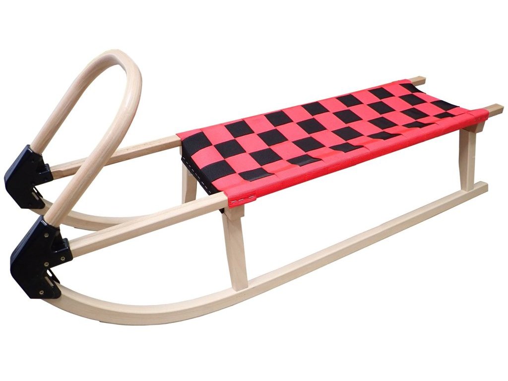 Sáně celodřevěné, s textilním popruhem na sedáku a kovovými lyžinami. Celková délka je 110 cm, z toho délka sedáku je 62 cm, šíře sedáku je 30 cm. Sáňky jsou určeny pro rekreační sport. Jedná se o tradiční výrobky od dlouholetých českých nebo slovenských výrobců. Tím je zaručena i kvalita a trvanlivost těchto výrobků. Popruh na tahání není součástí výrobku. Max. nosnost 90 kg.