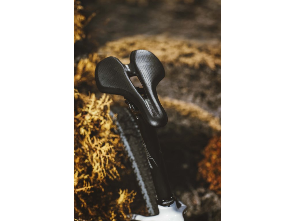 Užší sedlo určené zejména pro sportovní použití a pro jezdce s požadavkem na co nejnižší hmotnost,která je dosažena použitím celokarbonové konstrukce včetně vzpěr a nízké velmi lehké vrstvě