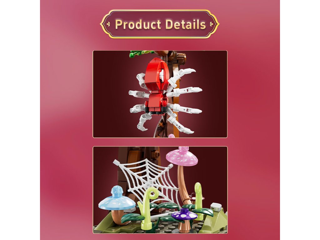 Pavučina je architektonický zázrak přírody – a v jejím středu číhá pavouk. Tento model MOULD KING věrně ztvárňuje osminohého predátora na větvi s detailní bílou pavučinou, houbami a listy. Realistické proporce a dekorativní prvky z něj dělají výjimečný kousek do vitríny.