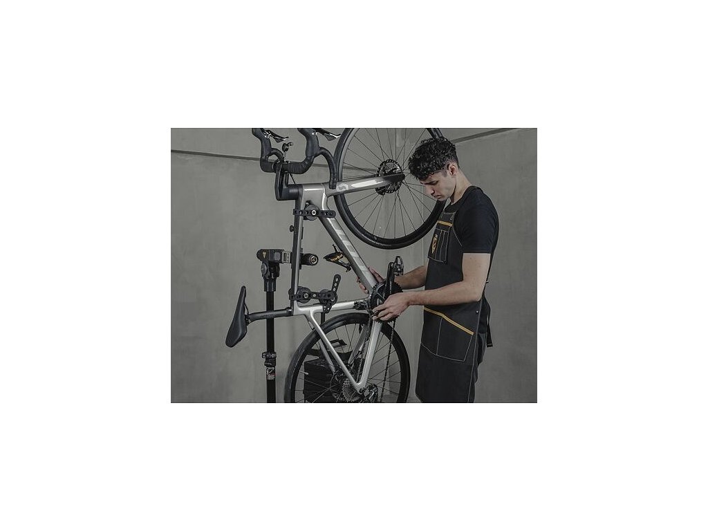 Jedinečný závěsný systém pro servisní stojan na kolo. Nastavitelná tříbodová svorková konstrukce používaná se stojany na opravu jízdních kol zajišťuje stabilitu a eliminuje poškození tenkostěnných a aerodynamických trubek. Nastavitelná délka svorky, 3 polohy upnutí kontaktů a nastavitelné gumové pásky se hodí na jakýkoli rám jízdního kola a upevňují se na servisní stojan blíže k těžišti kola, čímž se zlepšuje celková stabilita. Přiložený stabilizátor řídítek je délkově nastavitelný tak, aby vyhovoval většině jízdních kol a udržel jejich řídítka a přední kolo v bezpečí. Kompatibilní se stojany Topeak PrepStand Pro, PrepStand Elite nebo jinými servisními stojany s upínacími čelistmi.