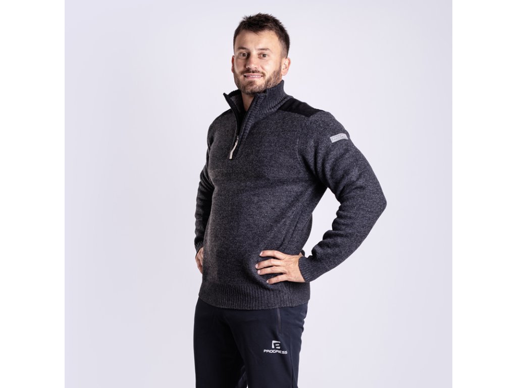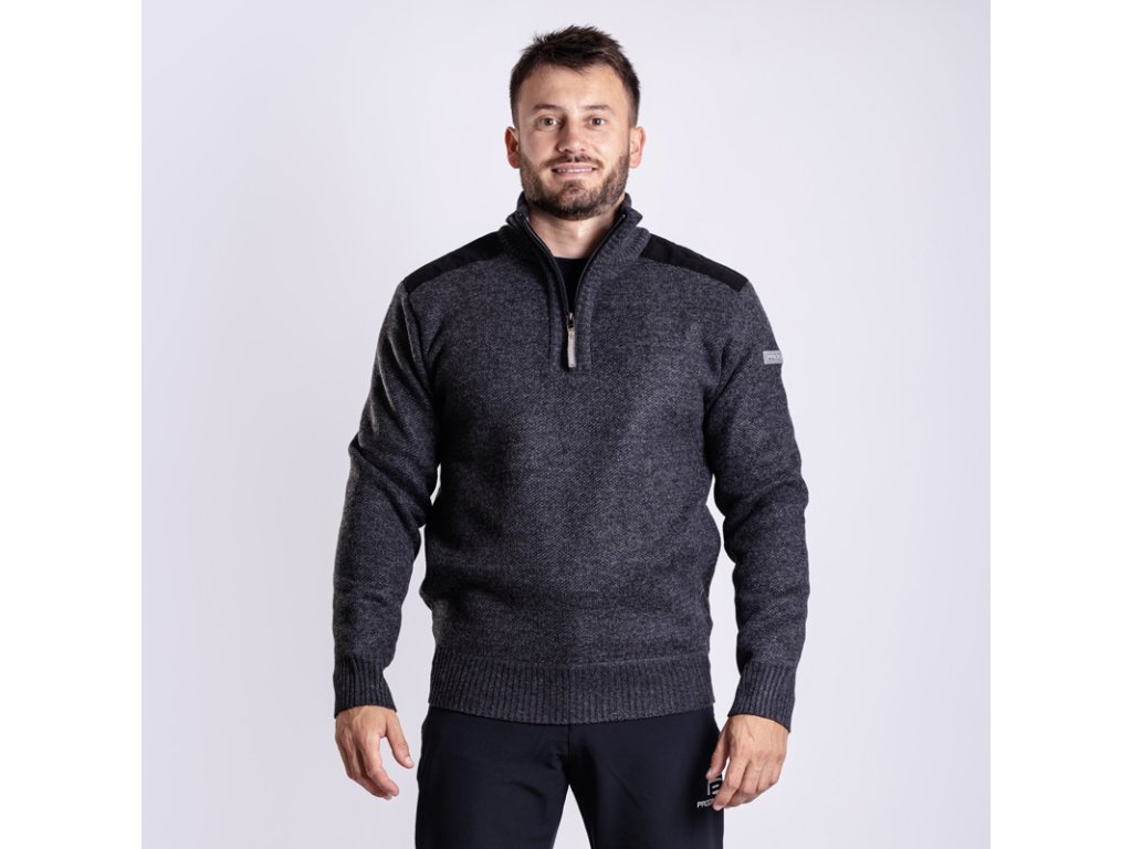 svetr pánský Progress LOFOTEN s krátkým zipem černý melír