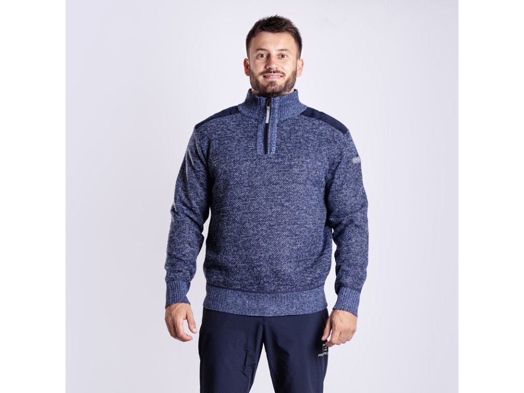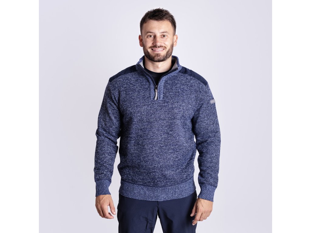 svetr pánský Progress LOFOTEN s krátkým zipem modrý melír