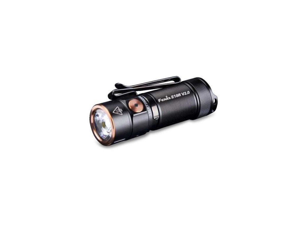 Fenix E18R V2.0 je nabíjecí miniaturní kapesní LED svítilna s krátkodobým extrémním výkonem až 1200 lumenů (ANSI). Tento model používá jako světelný zdroj špičkovou diodu Luminus SST-40. Díky délce pouhých 67 milimetrů a váze 56 gramů (včetně baterie) ji lze nosit stále při sobě - v kapse, na klíčích či v kabelce. Je napájená nabíjecím Li-ion akumulátorem RCR123A, který lze nabíjet ve svítilně přes USB-C konektor z jakékoliv USB zdroje (např. počítač, powerbanka, USB zdroj v autě). Nouzově lze použít i jednorázovou CR123A baterií.
