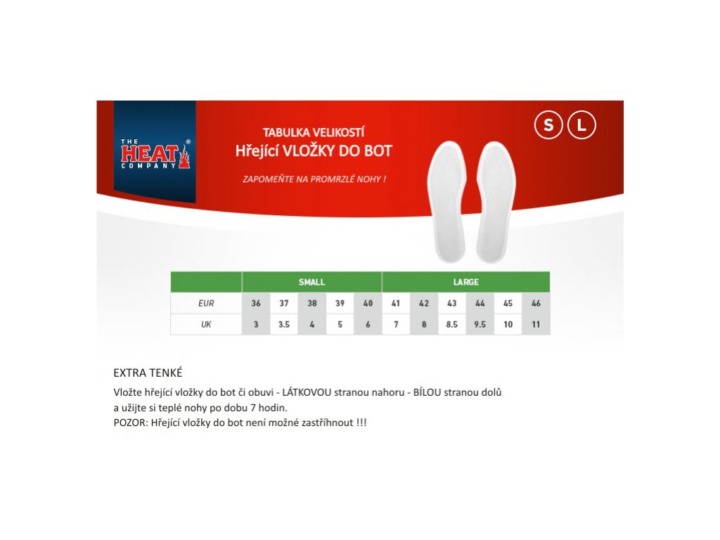 Hřející vložky do bot jsou tenké, díky čemuž jsou vhodné pro každé boty (do všech typů obuvi). Po té, co přestanou hřející vložky do bot hřát, je vyhoďte do běžného domácího odpadu.