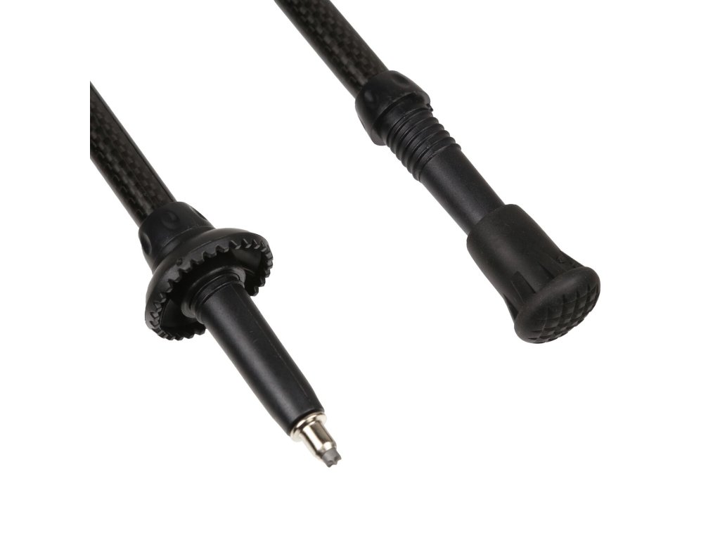 Třísekční teleskopická konstrukce s moderním rychloupínacím mechanismem umožňuje snadné nastavení délky a kompaktní složení pro transport. O jistý odraz se stará karbidový (wolframový) hrot, který doplňují ochranné gumové patky a talířky. Komfort zajišťuje ergonomická rukojeť z měkké pěny a polstrovaný nastavitelný pásek na zápěstí.
