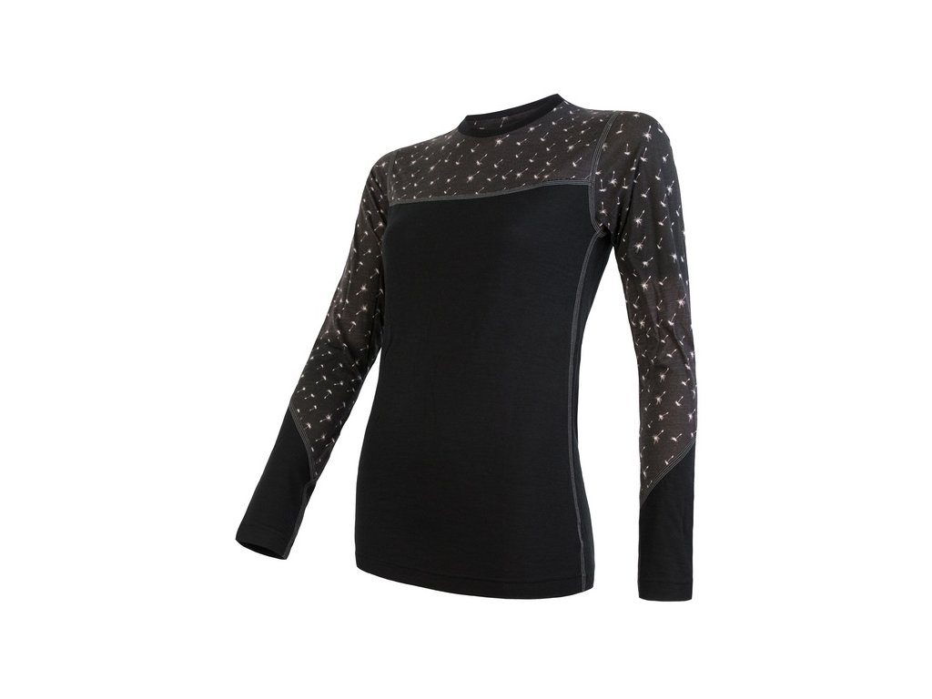 triko dlouhé dámské SENSOR MERINO IMPRESS černá/pattern