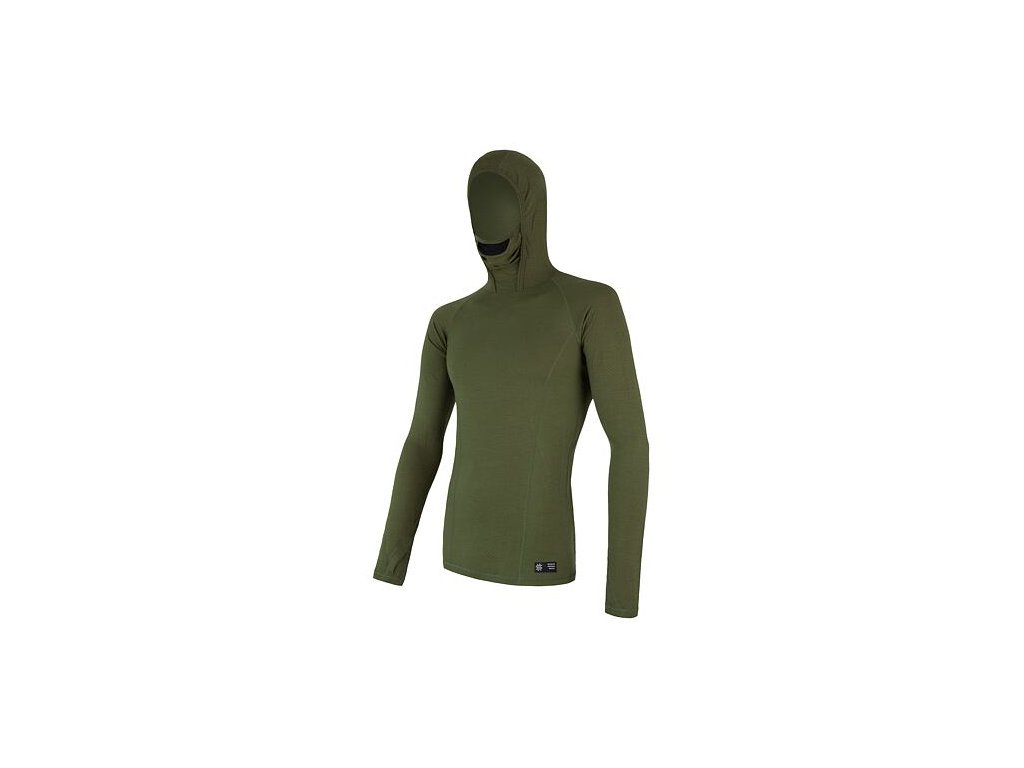 triko dlouhé pánské SENSOR MERINO DOUBLE FACE s kapucou safari