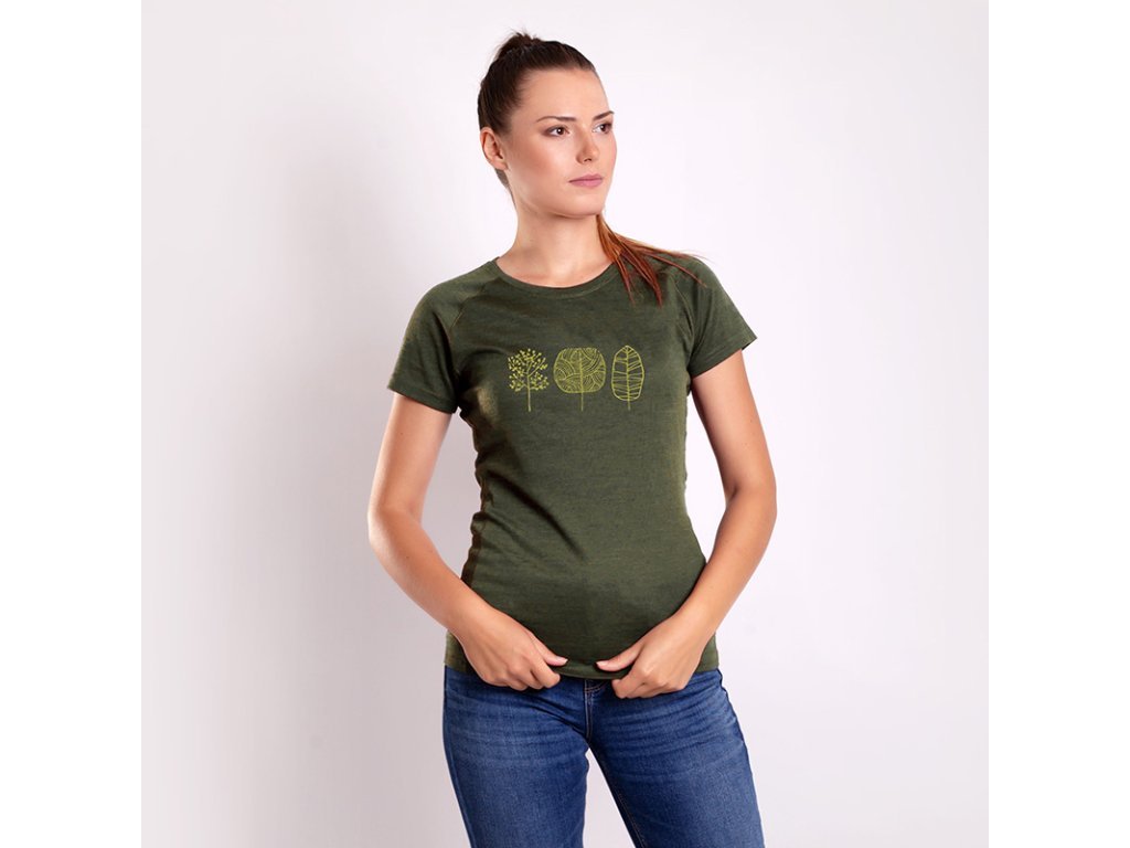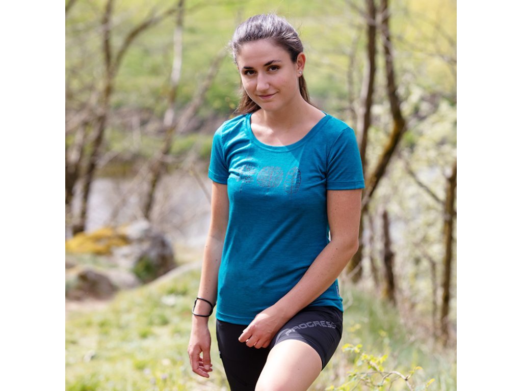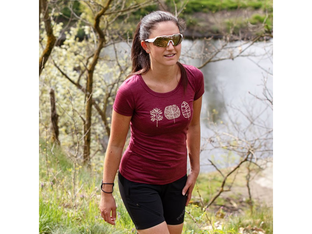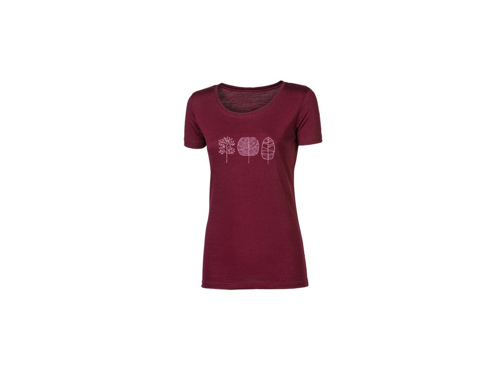 triko krátké dámské Progress VINKA TREES merino vínový melír