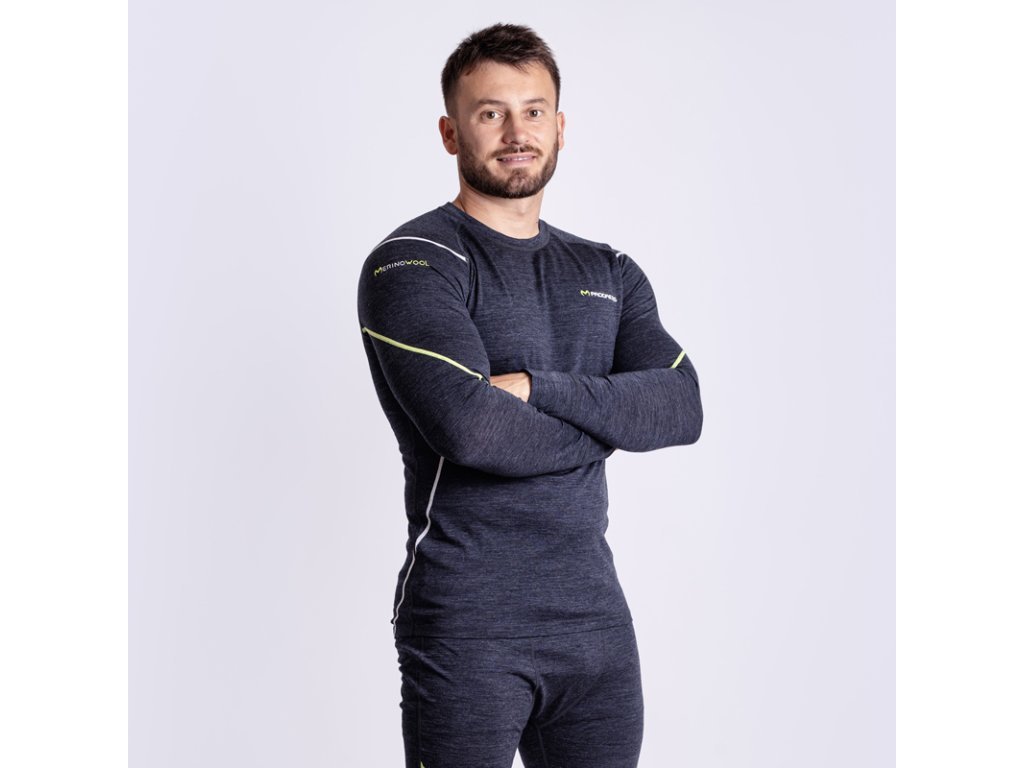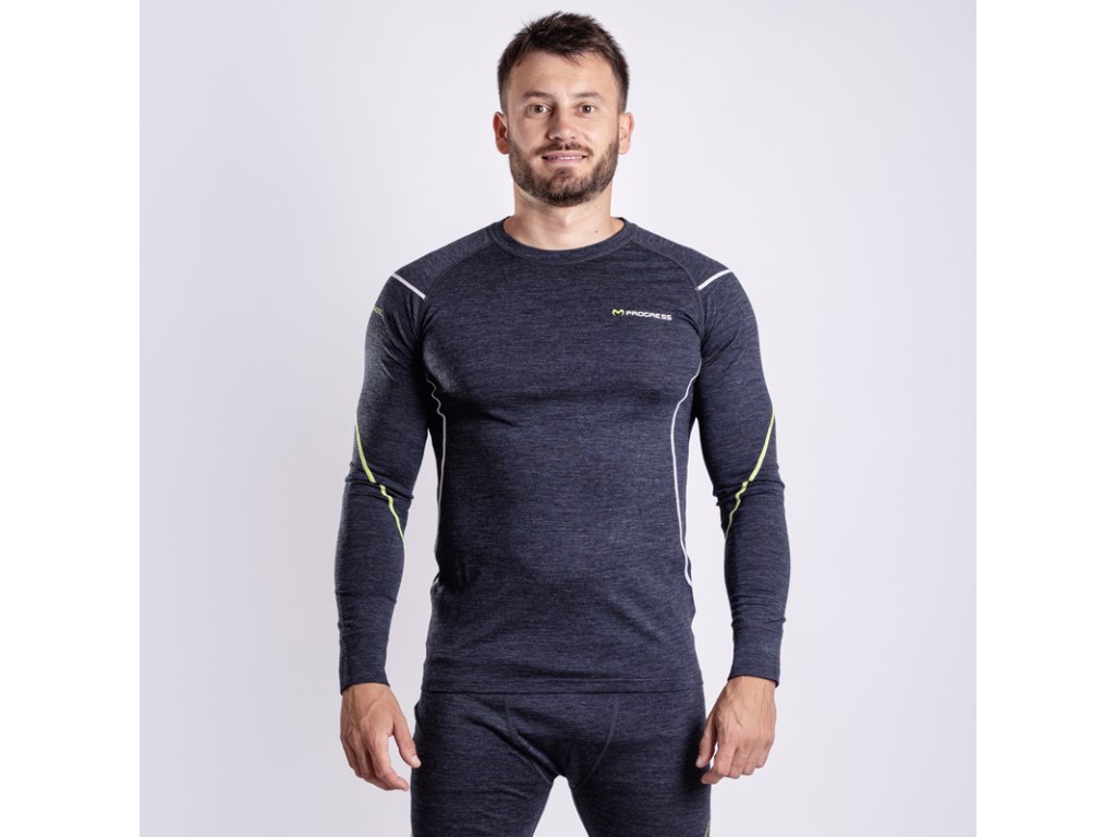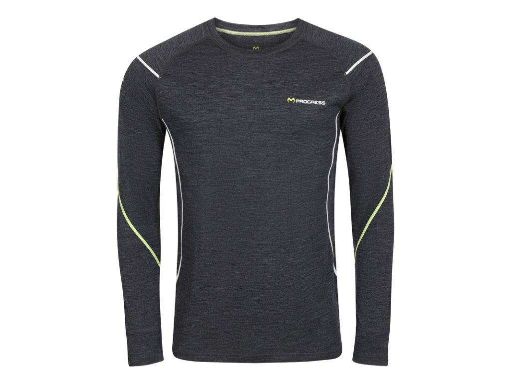triko pánské dlouhé Progress MW NDR 170 merino černý melír