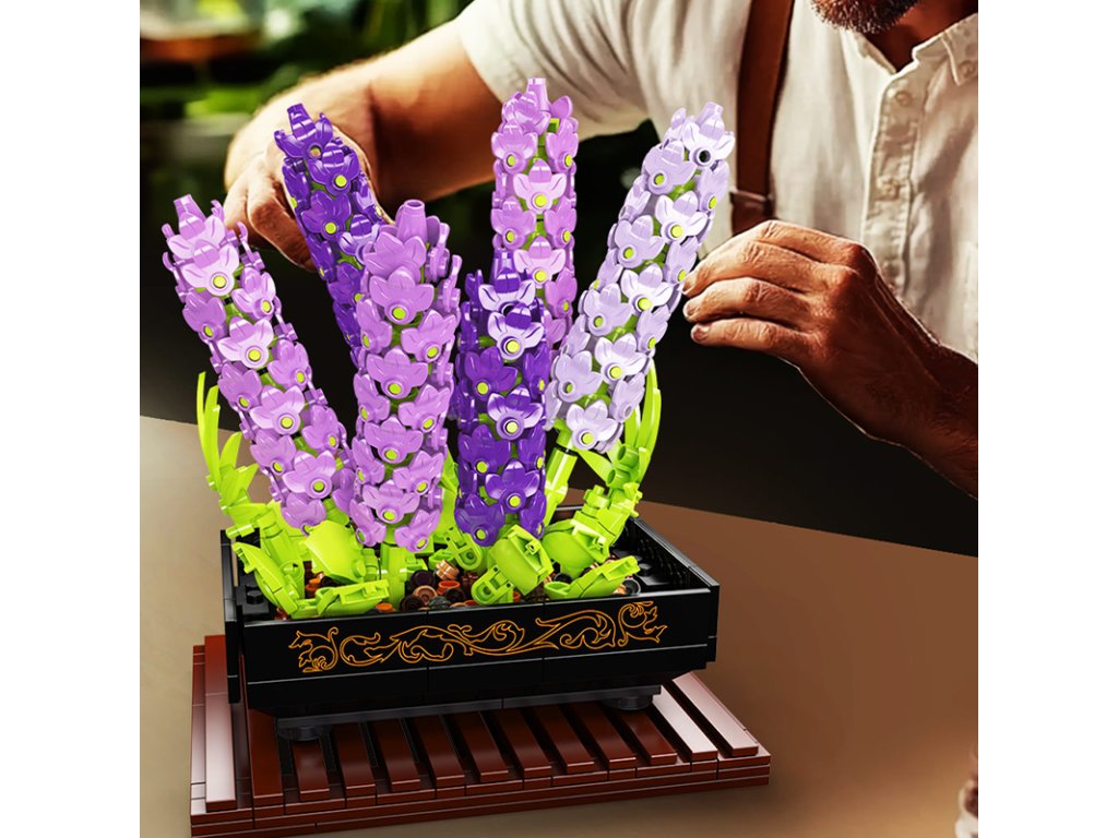 Stavbu začnete dřevěným podstavcem, na němž spočine elegantní bonsajový květináč s jemným zdobením. Postupně sestavíte několik stonků fialek se zajímavě řešenými květy v různých odstínech, které nakonec spojíte do harmonické a bohaté kytice. Výsledek? Luxusní bonsajová dekorace, která vnese do prostoru barvu a klid.