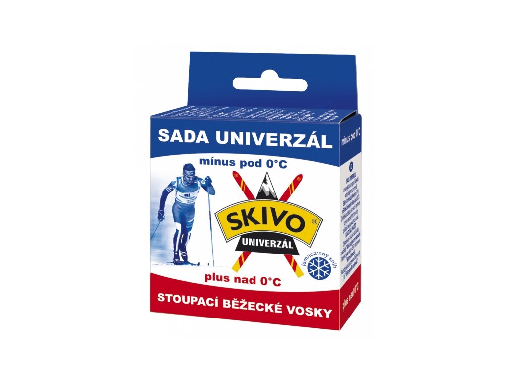 Rozsah použití: dva univerzální vosky, Skivo Univerzál plus a Skivo Univerzál mínus. Vosky pro zajištění dobrého odrazu a stoupání běžeckých lyží na jemnozrnném sněhu při všech teplotách. Souprava je určena pro začátečníky a rekreační lyžaře.